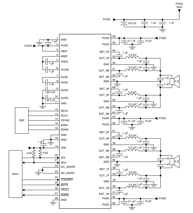 該器件具有內置負載診斷功能,用于檢測和診斷誤接的輸出,以及檢測交流耦合的高頻揚聲器,以幫助縮短制造過程中的測試時間。