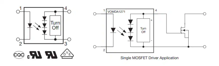 VISHAY/威世 VOMDA1271T車用MOSFET驅動器可為驅動隔離柵低壓初級側的紅外發射器內部電路提供所需的所有電流。這款汽車級光隔離MOSFET驅動器不需要電源提供VCC。VISHAY/威世 VOMDA1271T采用關斷電路來實現MOSFET的快速關斷。