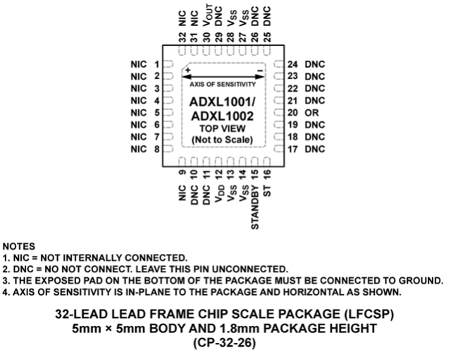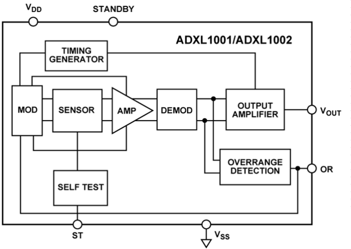 ADXL1001/ADXL1002 擁有集成的全靜電自檢 (ST) 功能和超范圍 (OR) 指示器,可以提供先進的系統級功能并可用于嵌入式應用。憑借低功耗和 3.3 V 至 5.25 V 的單電源供電,ADXL1001/ADXL1002 還允許進行無線感測產品設計。ADXL1001/ ADXL1002 提供 5 mm × 5 mm × 1.80 mm LFCSP 封裝,可在 ?40°C 至 +125°C 的溫度范圍內工作。