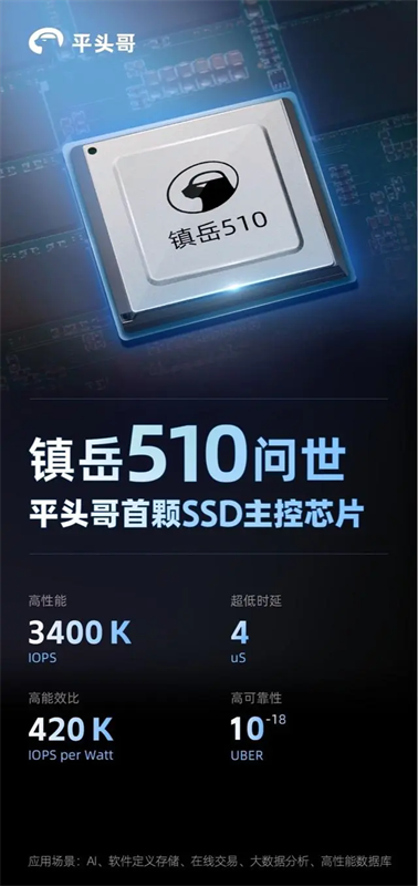 11 月 1 日消息,在今日舉行的 2023 云棲大會上,阿里巴巴平頭哥發(fā)布旗下首顆 SSD 主控芯片鎮(zhèn)岳 510。