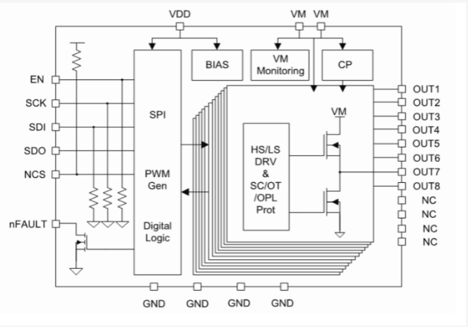 可在 4 個異步收發器 (UART),6 個串行外設接口 (SPI) 和 2 個 I2C 接口間配置