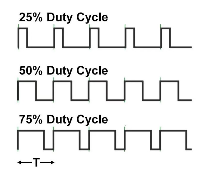 這個同PWM一樣,也是一個比較常見的名詞,它是描述脈沖寬度的一項參數(shù),通常用百分?jǐn)?shù)表示。