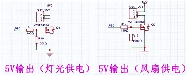 4.電路采用直流12V供電,經DC-DC降壓后輸出5.2V,5.2V再經LDO降壓后輸出3.3V。其中CI-C22GS02模塊、舵機、WS2812B、外部燈光和風扇供電均采用5.2V供電,MCU主控、IPS顯示屏采用3.3V供電。