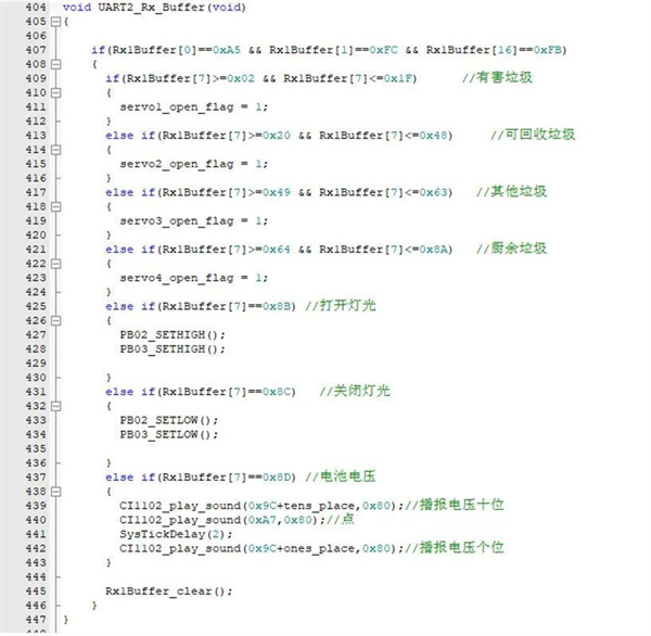 1.離線語音模塊的命令詞可自行定制,最多可錄入200個命令詞,目前已錄入了168條垃圾名詞和一些控制指令。當語音模塊識別到正確的命令詞后,串口輸出規定協議的數據。語音模塊也可以接收規定協議的串口數據來播報指定的語音。離線語音模塊的串口1和MCU主控的串口2使用跳線連接,方便分別開發調試。
