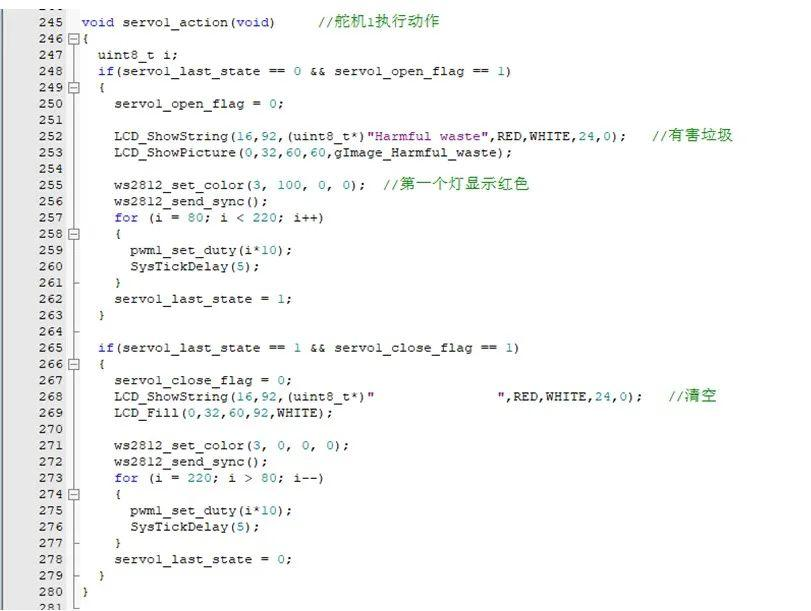 采用定時器和標志位,使舵機緩慢打開,一定時間后緩慢自動關閉,4路舵機相互不受影響。