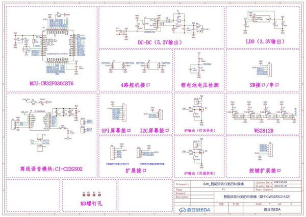 簡介:基于武漢芯源半導體CW32F030C8T6和啟英泰倫CI-C22GS02制作的智能語音分類垃圾桶,能夠實現識別語音來判斷垃圾種類,同時打開相應的垃圾桶,可外接普通按鍵或者觸摸按鍵,也可以外接紅外接近傳感器來打開對應的垃圾桶。
