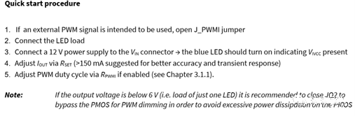 板卡設計了2種工作模式,分別是LED驅動和電壓調節器,這2種工作模式的切換是通過JV1-JV5、JO2以及JPWMI和J_DIMM跳線實現的,這里必須要吐槽一下JV1-JV5、JO2跳線位置,不知道官方是出于什么目的,為何這幾個位置的跳線不采用排針加短路帽的形式呢?每次變更板卡的模式都需要用電烙鐵重新上錫和去錫,非常不便。
