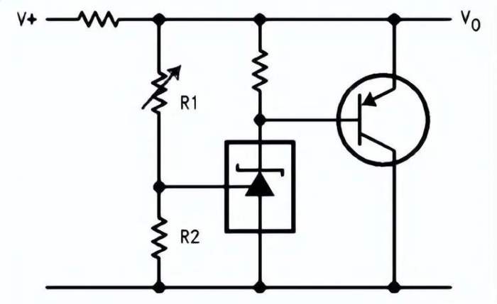基于 LM431 的高電流并聯穩壓器 如下所示,與上圖相比,增加了三極管,提高了續流能力。