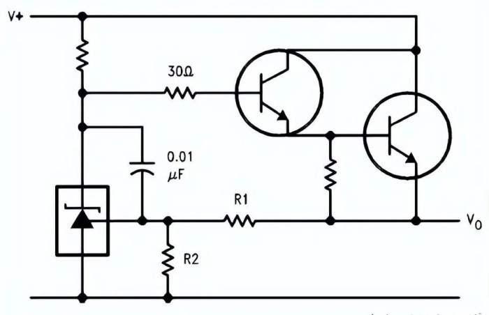 與應用1中的并聯穩壓器相比,該電路增加了穩壓器的續流能力。