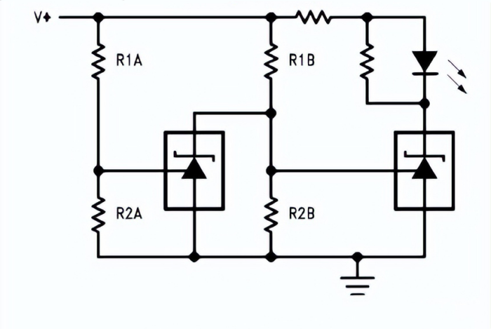 基于 LM431 的過壓欠壓保護電路如下所示:
