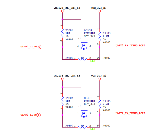 然后在原理圖中也看到了這個電平轉化電路,感覺器件取值各位可以借鑒一下。