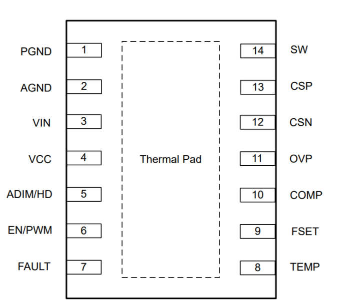 14 引腳 VSON 頂視圖布局示例