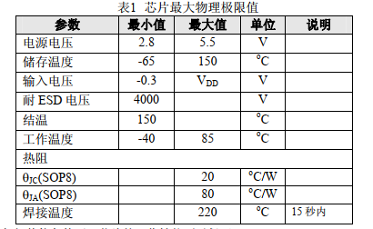 注:在極限值之外或任何其他條件下,芯片的工作性能不予保證。