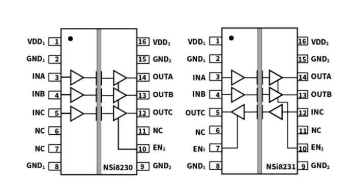 納芯微NSI8231W1-DSWR是高可靠性的三通道數字隔離器。此系列產品已通過UL1577安全認證,支持多種絕緣耐壓(5kVrms, 5.7kVrms),同時具有低功耗,高電磁抗擾度和低輻射的特性。產品的數據速率高達150Mbps,共模瞬變抗擾度(CMTI)高達200kV/us。在輸入缺失時默認輸出電平配置,且提供數字通道方向配置。 此系列器件的寬電源電壓范圍支持其與大多數數字接口直接連接,易于進行電平轉換。優異的系統級別EMC性能提高了使用的可靠性和穩定性。