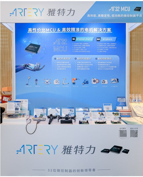 除了精彩的演講,此次研討會現場還設置了活動展示區,雅特力帶來了電動兩輪車、電摩控制器、高速風筒、無人機、割草機等電機應用方案,以及基于雙ADC引擎AT32F413的低壓電機開發板,運行了雅特力最新開發的電機庫,吸引了眾多觀眾前來參觀交流!