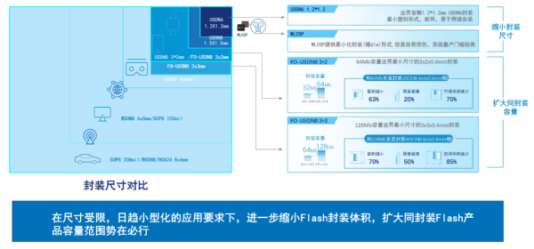 王歡表示:“在尺寸受限、日趨小型化,應用多樣化的大環境下,兆易創新致力于縮小Flash封裝體積、擴大同封裝Flash產品容量范圍以及增強Flash性能,從而適用于更多物聯網設備。”例如兆易創新推出了采用1.2mm x 1.2mm USON6超小塑封封裝、最大厚度僅為0.4mm的GD25WDxxK6系列NOR Flash,非常適合智能戒指、智能服飾等應用場景;更有采用FO-USON8先進封裝的大容量小封裝NOR Flash產品陸續上市,為腕類穿戴等應用提供大容量更小封裝形式的選擇。
