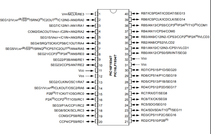 微芯PIC16F1937-I/P單片機的技術參數和應用電路圖