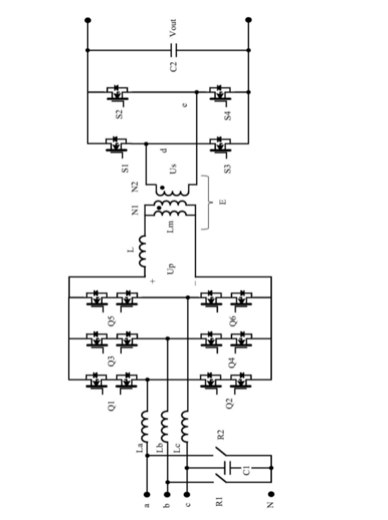 根據專利摘要,本發明涉及用于汽車充電裝置(on board charger,OBC)的ac/dc變換器。ac/dc變換器由3相輸入、3個輸入(a、b、c)、單級雙有源橋(dual?active bridge,DAB)電路;輔助電路。輔助電路由兩個開關裝置(r1, r2)和能源儲存裝置(c1)組成。上述輔助電路至少由兩個分支組成,兩個分支包括其中一個被提及的開關(r1和r2)。至少在季度上與單相ac輸入的輸入(a, b)相連接。另一個分支則與不進入單相ac的輸入(c)連接。另一個分支包括一個能量存儲系統(c1)。