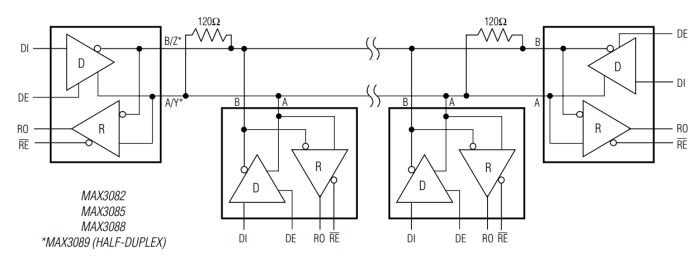 典型的半雙工RS-485網絡電路圖