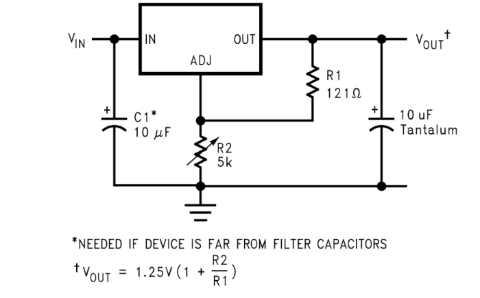 需要兩個電阻器來設置LM1084IS-3.3的可調輸出電壓版本的輸出電壓。固定輸出電壓版本集成了調節電阻器。