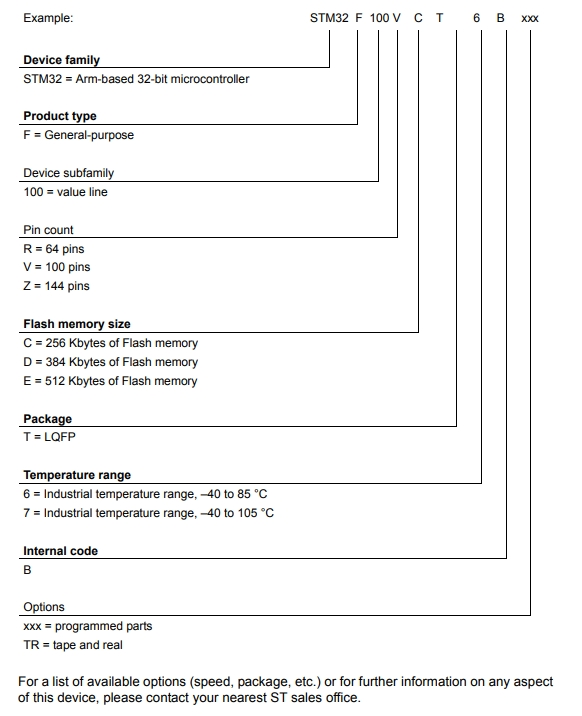 STM32F100ZET7B的型號解釋圖