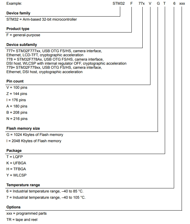 STM32F777BIT6的料號解釋圖