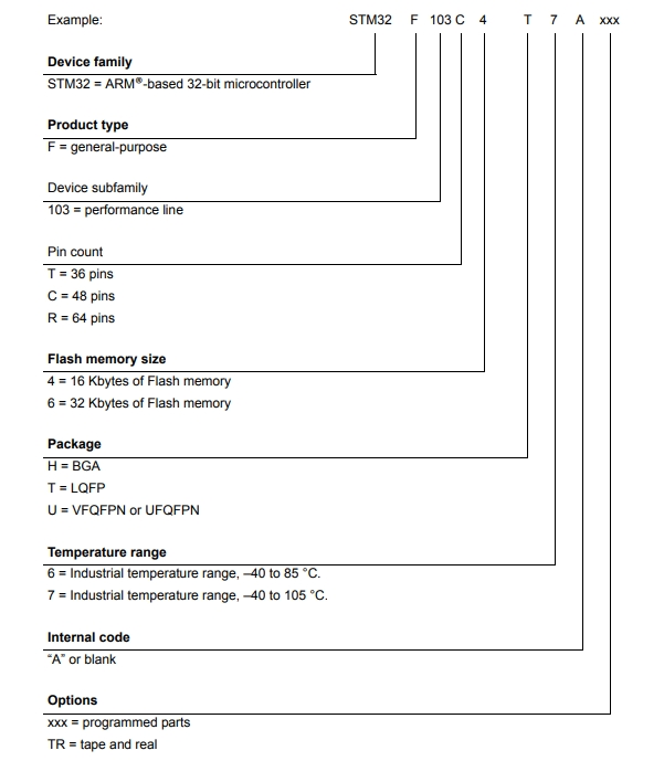 STM32F103R6T7A7的型號(hào)解釋圖