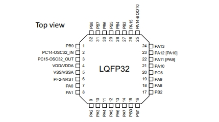 STM32G050K8T6提供標準通信接口(兩個I2C、兩個SPI/一個I2S和兩個USART)、一個12位ADC(2.5 MSps),最多19個通道、一個低功耗RTC、一個高級控制PWM定時器、五個通用16位定時器、兩個看門狗定時器和一個SysTick定時器。