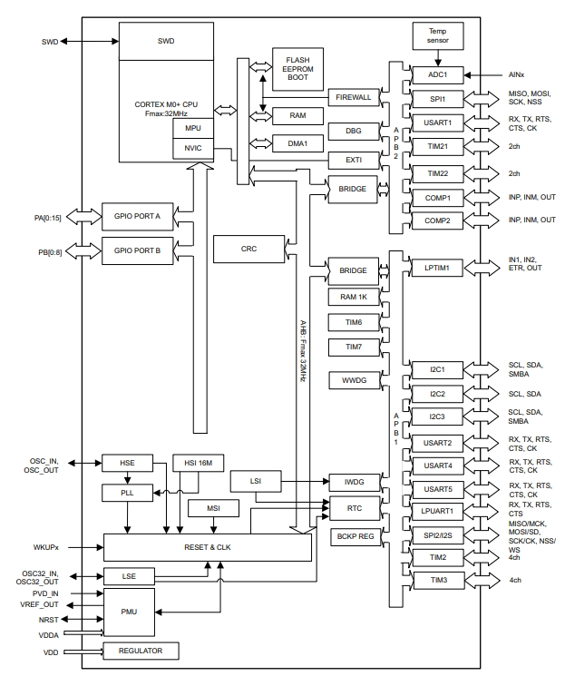 1、32位ARM Cortex-M0+內核:STM32L071CZT7采用了高性能的ARM Cortex-M0+處理器,具有低功耗和高效能的特點,并且支持Thumb指令集。