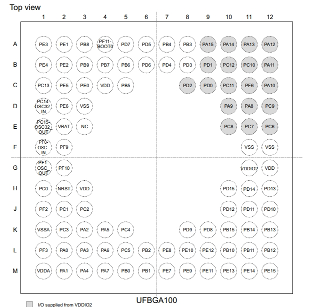 意法半導體STM32F091VCH7的引腳封裝圖