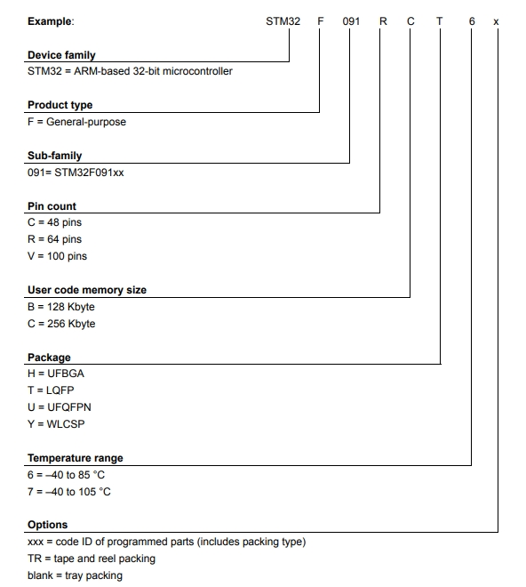 意法半導體STM32F091VCH7的型號解釋圖