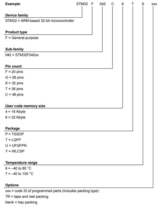 STM32F042K6T7的型號解釋圖