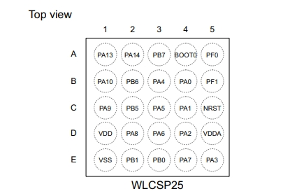 意法半導(dǎo)體STM32F031E6Y6TR的引腳封裝圖