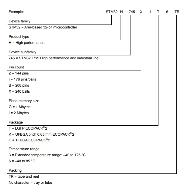 STM32H745ZGT6的型號解釋圖
