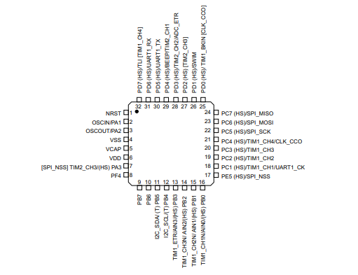意法半導體STM8S103K3T6CTR的功能方框圖