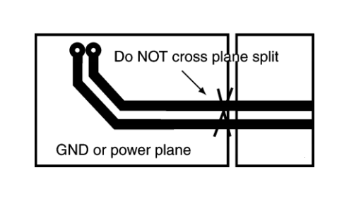 ?不要使高速信號(hào)走線穿過任何平面分割處。