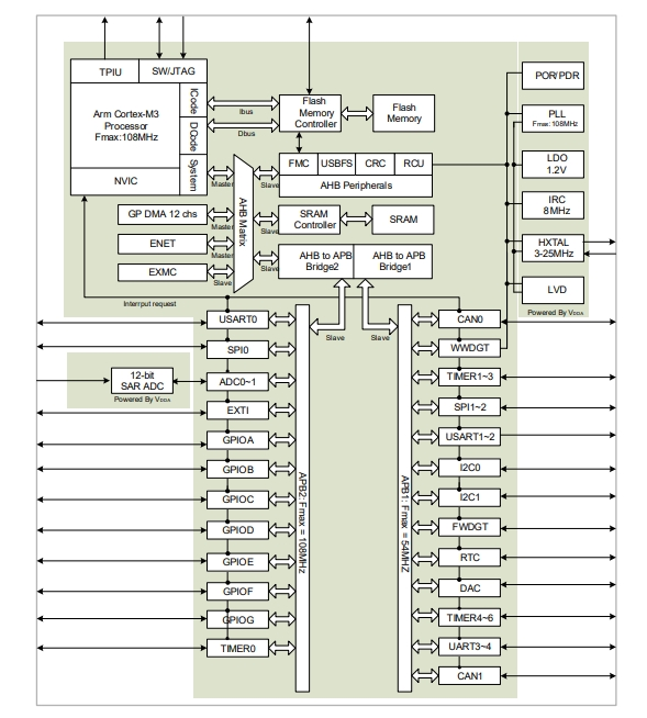 兆易創新GD32F107VET6的方框圖