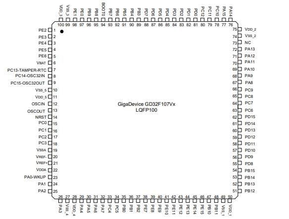兆易創新GD32F107VET6的引腳封裝圖