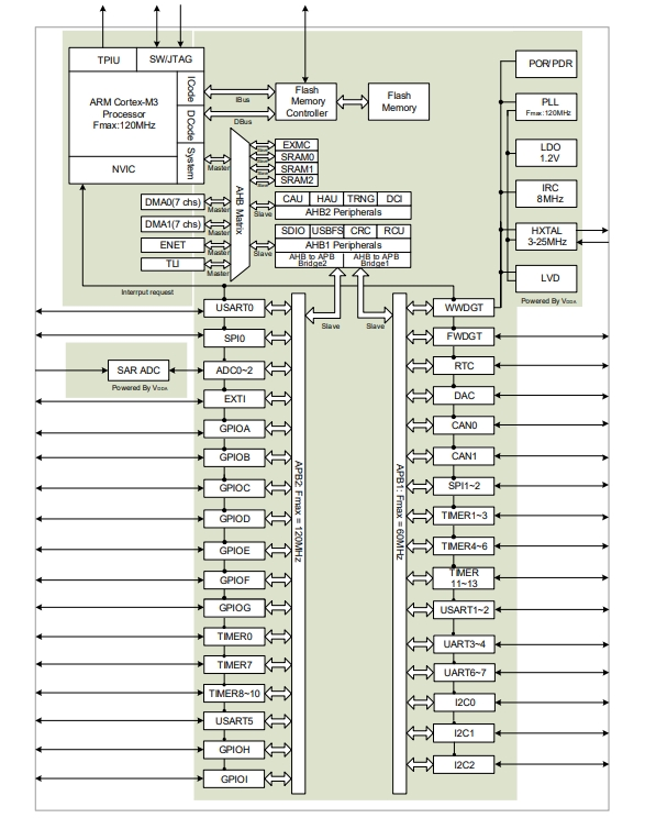 兆易創(chuàng)新GD32F207RCT6的功能方框圖