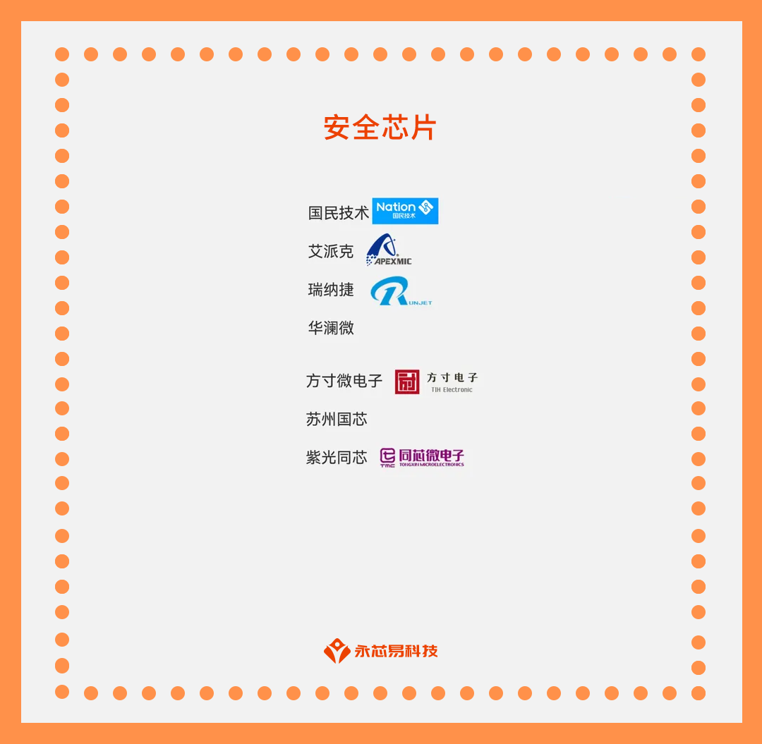 目前,國產(chǎn)安全芯片公司主要有以下幾家: