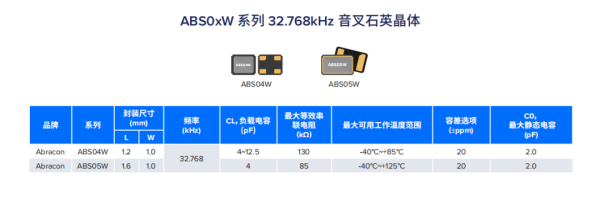 ABMxW 和 ABSxW 系列提供多種封裝、穩(wěn)定性和初始誤差等選項,其中頻率初始誤差可低至±10ppm。另外,ABMxW 和 ABSxW 系列晶體工作溫度范圍可寬至-40°C 至 125°C,適用于消費領(lǐng)域和工業(yè)電子設(shè)計等應(yīng)用。