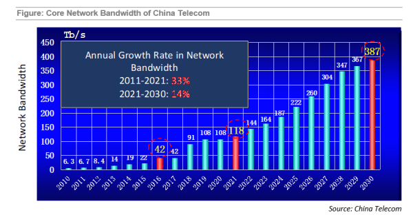 盡管在這個十年的剩余時間里,預計網絡帶寬的增長率較低,但核心網絡基礎設施的升級將繼續進行。所有中國服務提供商計劃在2023年底或最遲2024年開始部署400G QPSK系統。